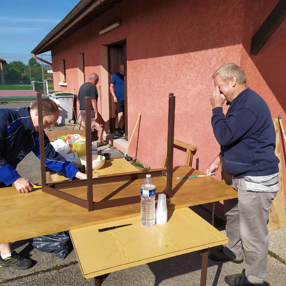 Samedi 31 août, une partie de l'équipe dirigeante s'est retrouvé de bonne heure au stade pour divers travaux: nettoyage complet des vestiaires, de la salle et de la buvette, entretien des abords, préparations diverses ont occupé la douzaine de présents. Ces travaux se sont comme d'habitude effectués dans la bonne humeur et ce même si le préposé au casse-croute est resté introuvable.