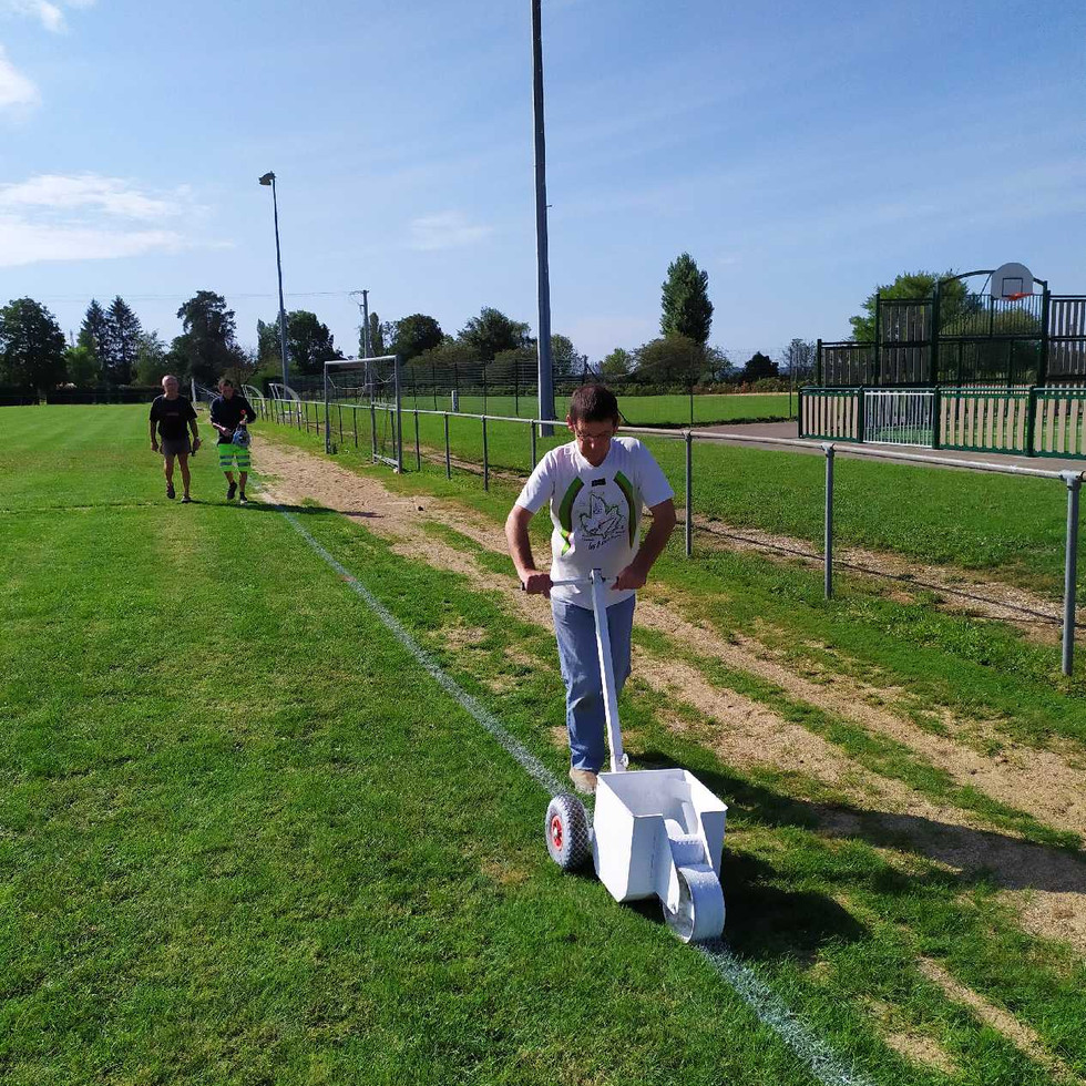 Une semaine après Foissiat, c’était au tour des installations d’Etrez de bénéficier des soins de l’équipe dirigeante. Le terrain tout fraichement équipé de l’arrosage automatique a été tracé avec le contrôle de notre arbitre Ludo COCHET bien épaulé par d’anciens hommes en noir, Michel COCHET, Vincent BREVET et le toujours présent Jean BARDET. Les vestiaires et la buvette ont été nettoyés de fond en comble et divers petits travaux de bricolages ont complété le programme. Et cette-fois, le casse-croûte ne s’était pas égaré en route pour le plus grand plaisir de tous.