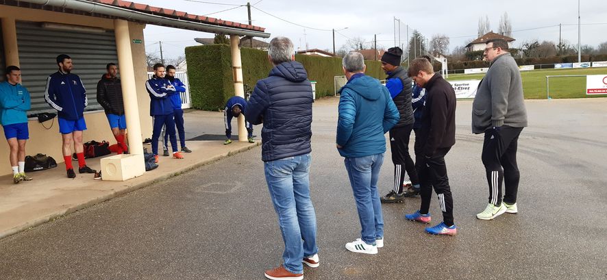 Ce dimanche 31/01/2021, Thierry et ses coachs adjoints ont convoqué les joueurs seniors pour le premier entrainement de l'année 2021. En introduction, Thierry SAXEMARD a rappelé aux joueurs son envie et sa motivation à l'aube de cette nouvelle saison. L'objectif principal restant de bien figurer dans cette poule de R3 mais également de permettre à l'équipe réserve de jouer les premiers rôles. Pour ce faire, la mobilisation sans faille de tous les joueurs est nécessaire. Le projet de Thierry s'inscrit à FOISSIAT dans la durée, puisqu'il a également fait part aux joueurs et à l'équipe dirigeante de son souhait de rester au club la saison prochaine.
